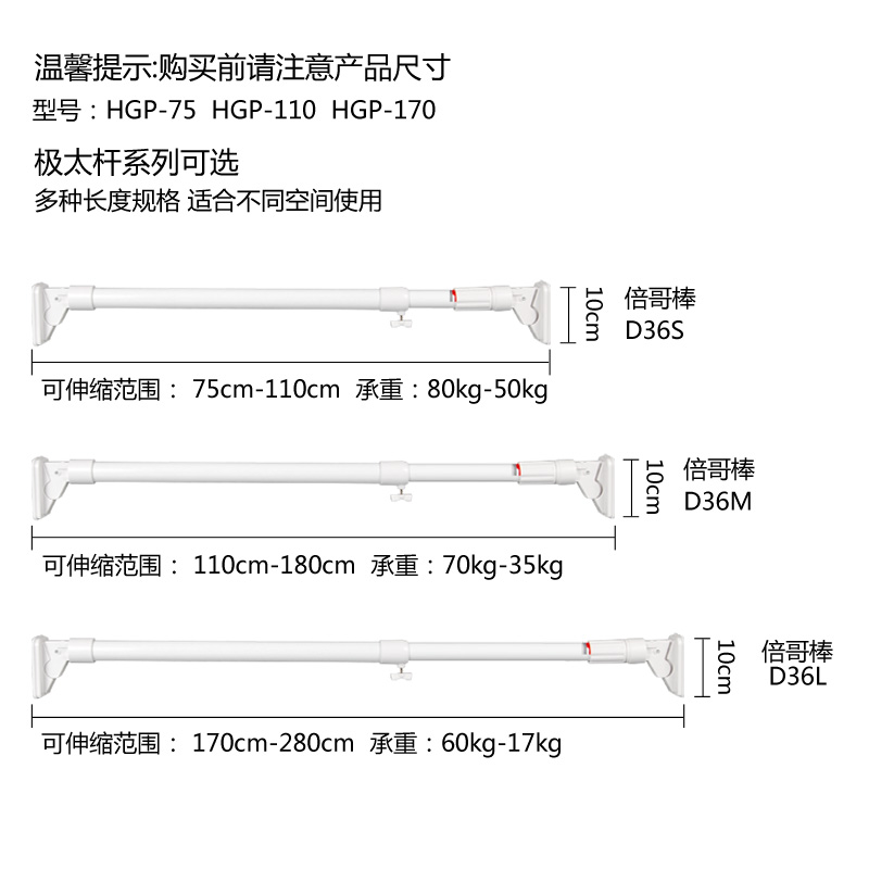 Thickened thickened large load-bearing balcony drying rod Nail-free telescopic hanging rod Powder room bathroom telescopic rod drying rod