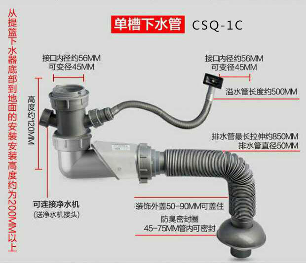 Diving Boat New washing basin Lower water pipe drain Kitchen Deodorized Single Double Sink Sewer accessories CSQ-1C