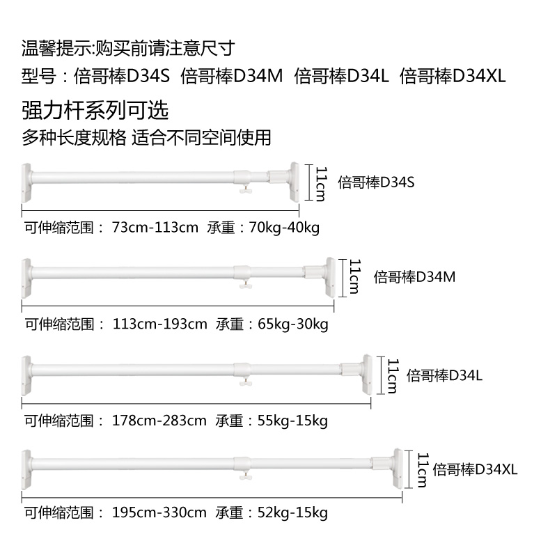 Double Gothic Bar Large load-bearing hanging clothes Rod Wardrobe Telescopic bathroom Balcony Clotheshorse clothesline Non-perforated telescopic rods