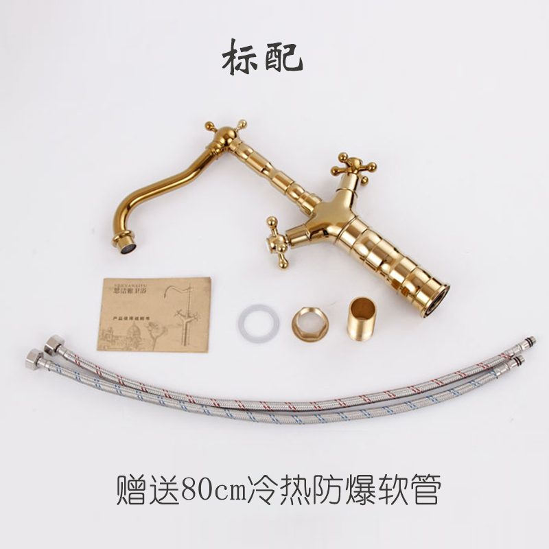 European pure copper bathroom Full copper gold basin Hot and cold water faucet Antique double single control gold basin faucet