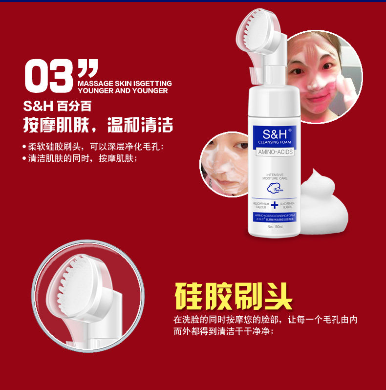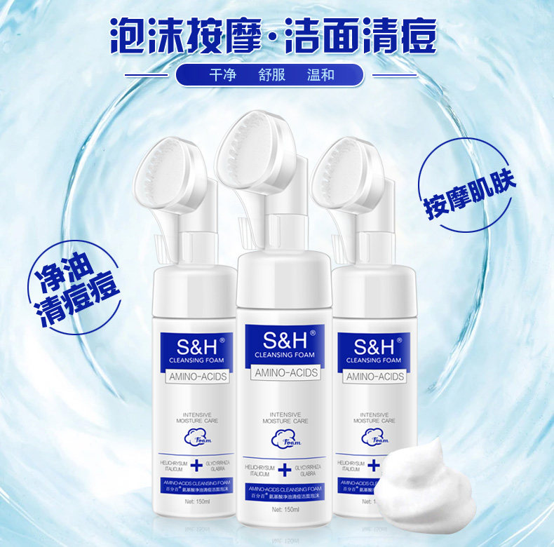 PercentiSH amino acid finish foam with brush head deep clean face moisturizing control oil wash face milk
