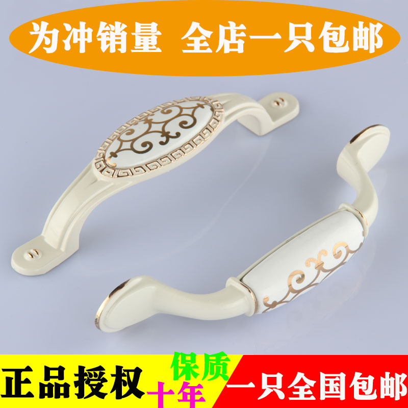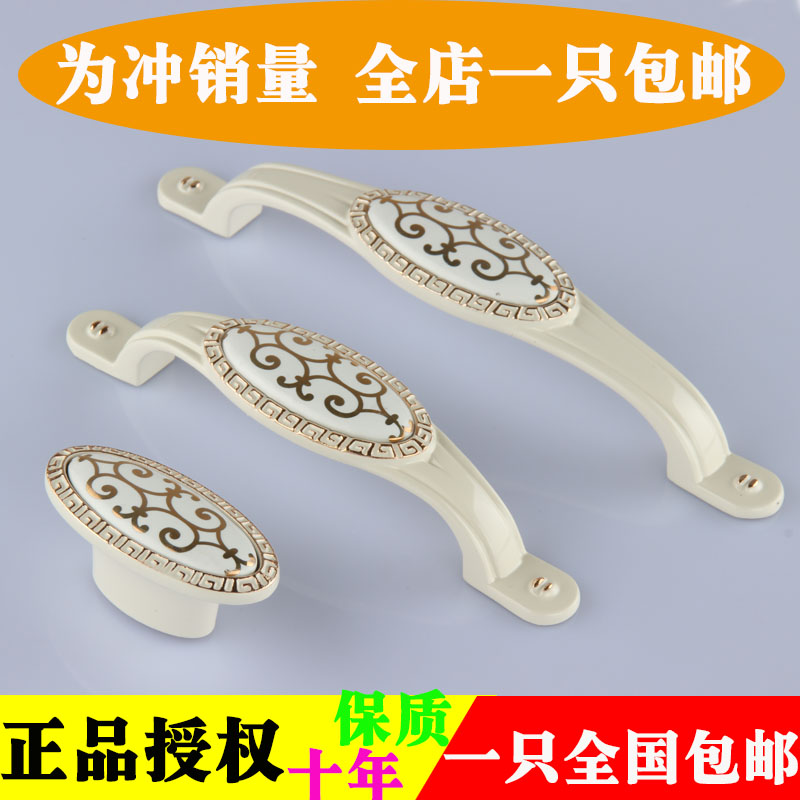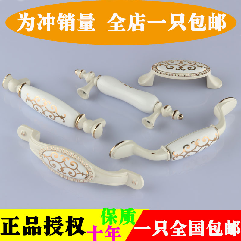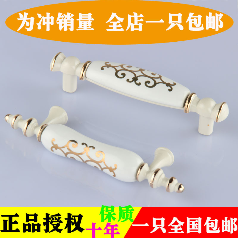 European ivory white ceramic handle Modern cabinet handle Ceramic drawer handle Large gold flower ceramic crack handle