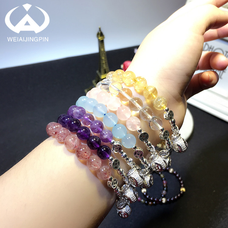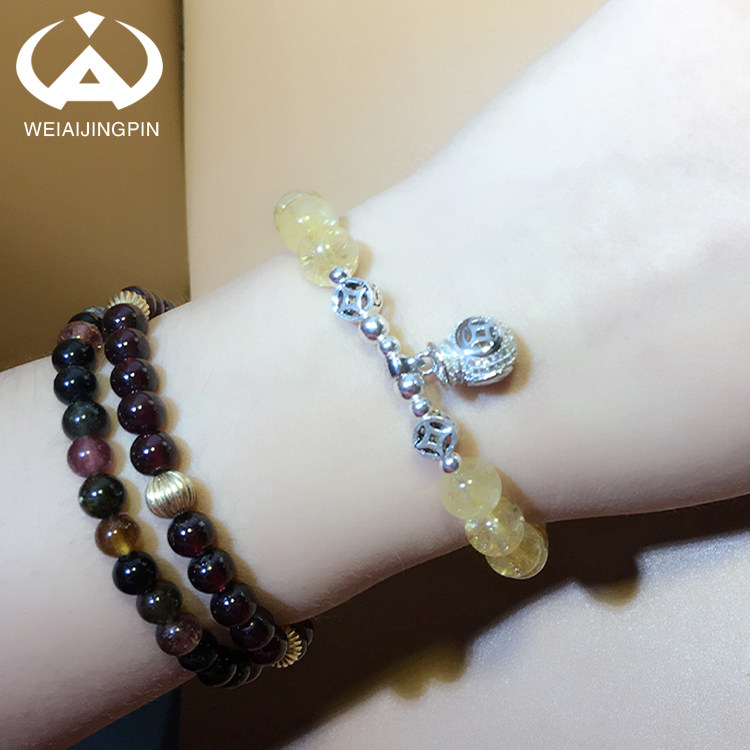 Natural Basil Yellow Crystal Handmade Woman 925 silver Money bag Pink Purple Crystal Strawberry Crystal Single Lap Handstring Gift