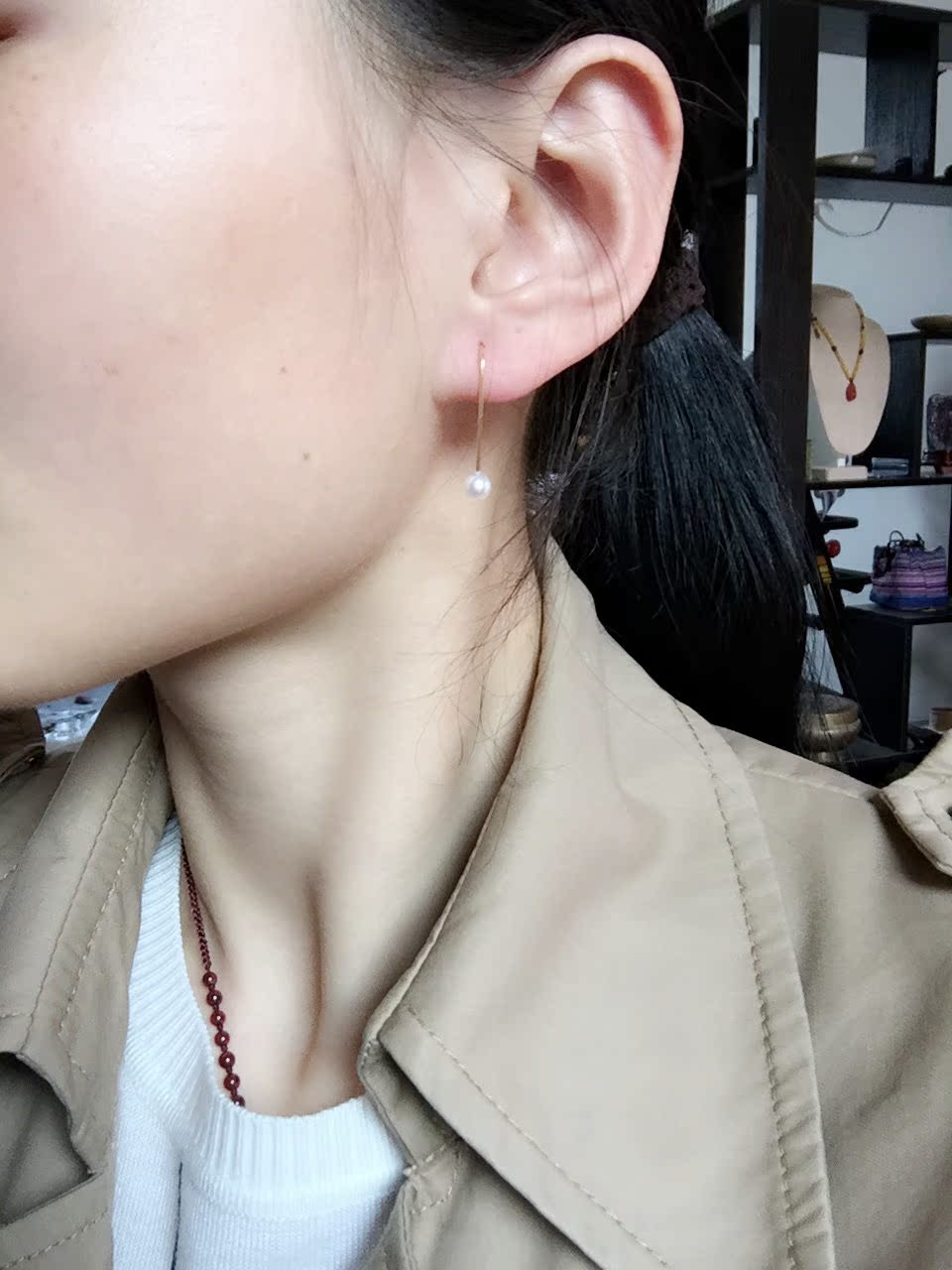 Small fresh natural akoya seawater pearl earrings "first encounter original"