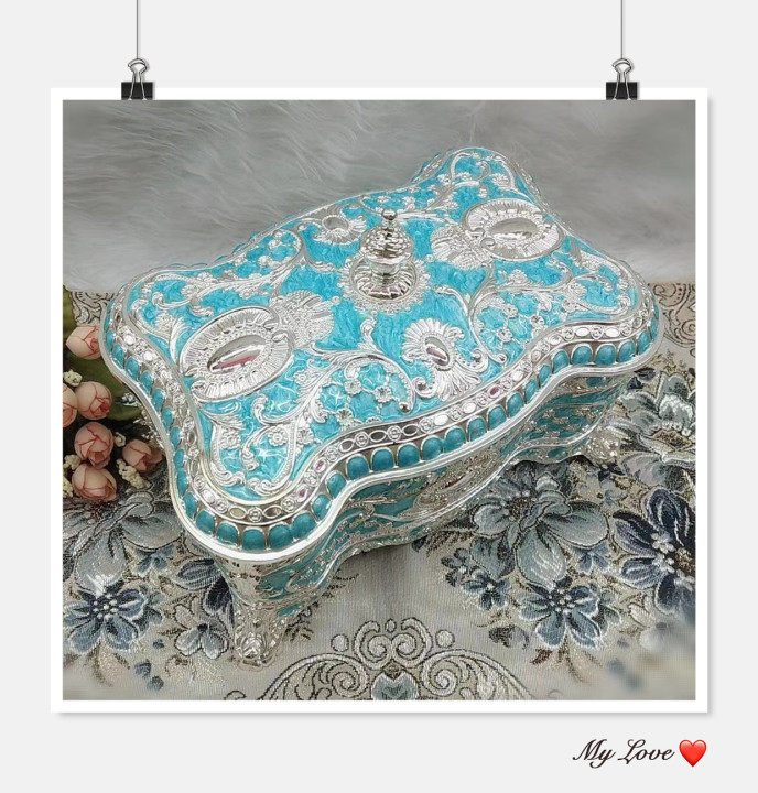 Russian enamel Silver silver tin First Jewelry Box Lady Tin Made Jewelry Case Drill Ring Box Birthday Gift Atlantic Necklace Box