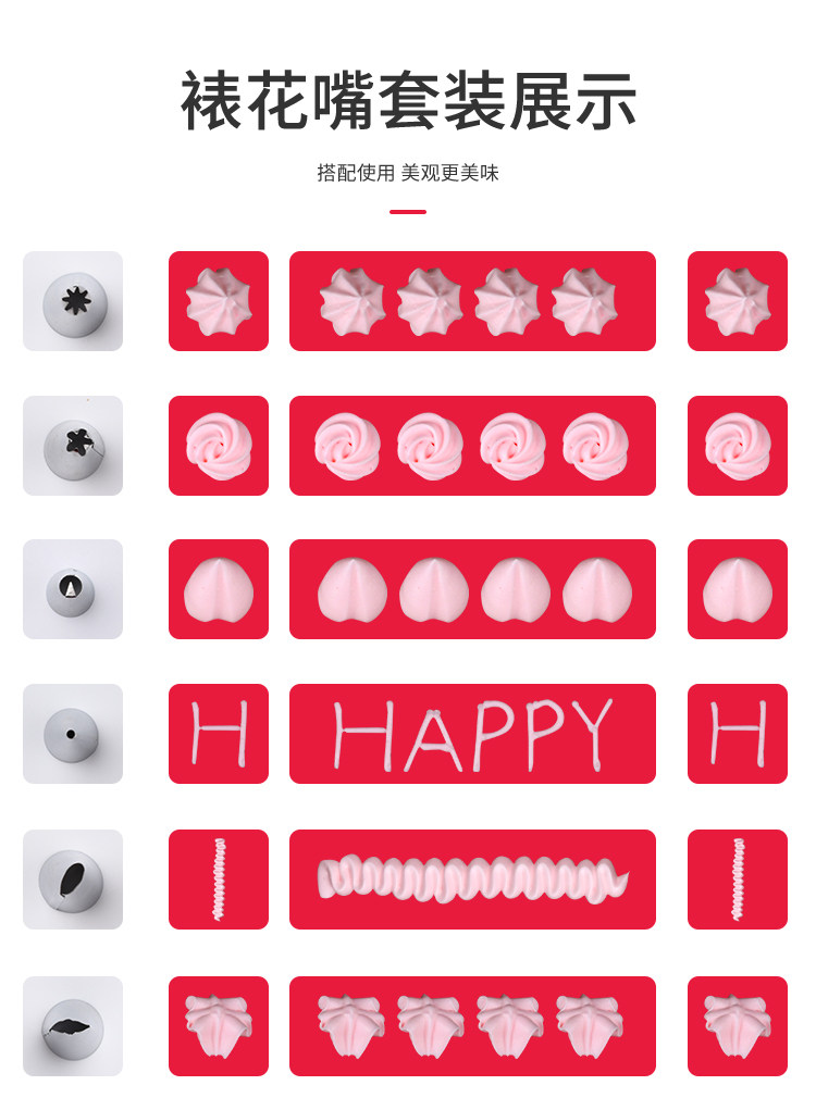 6 Piping Heads 6 Piping Heads 10 Piping Bags 6 Piping Tips Reusable Silicone Piping Bags 1 Reusable Silicone Piping Bags