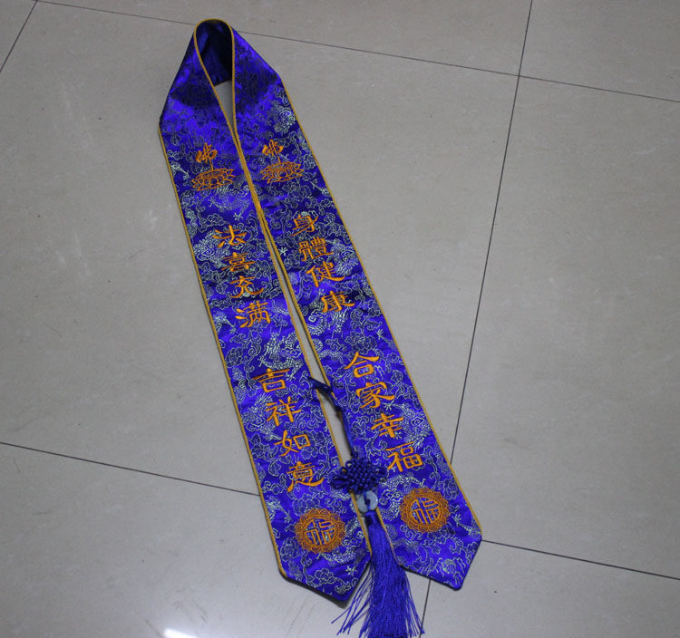 Blue Fu Character Ribbon with VIP Courtesy Belt and Dingdang High-end Embroidery Auspicious and auspicious Taoist Law Buddha Matter