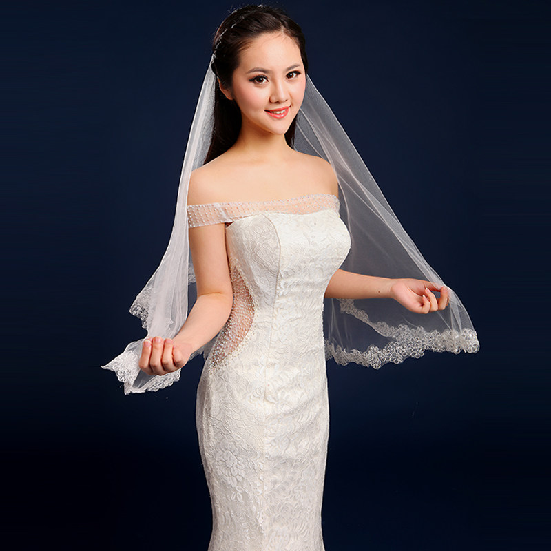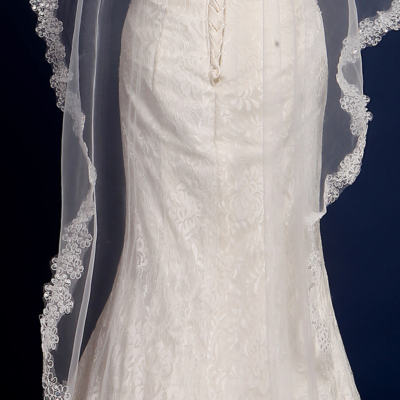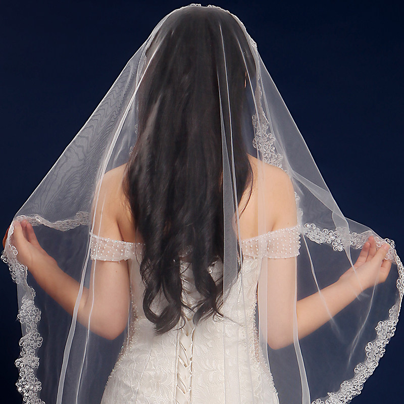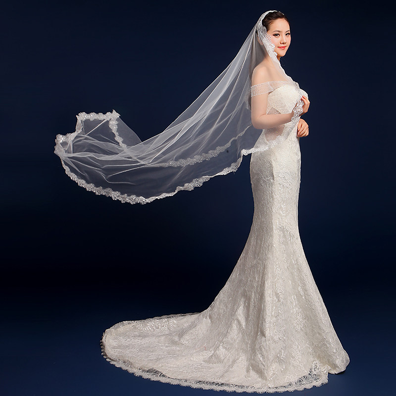 Bridal Head Yarn New Wedding Wedding Dress Head Yarn Long Version Han Style Lace Lace Soft Yarn Head Yarn Super-long Tug Tail