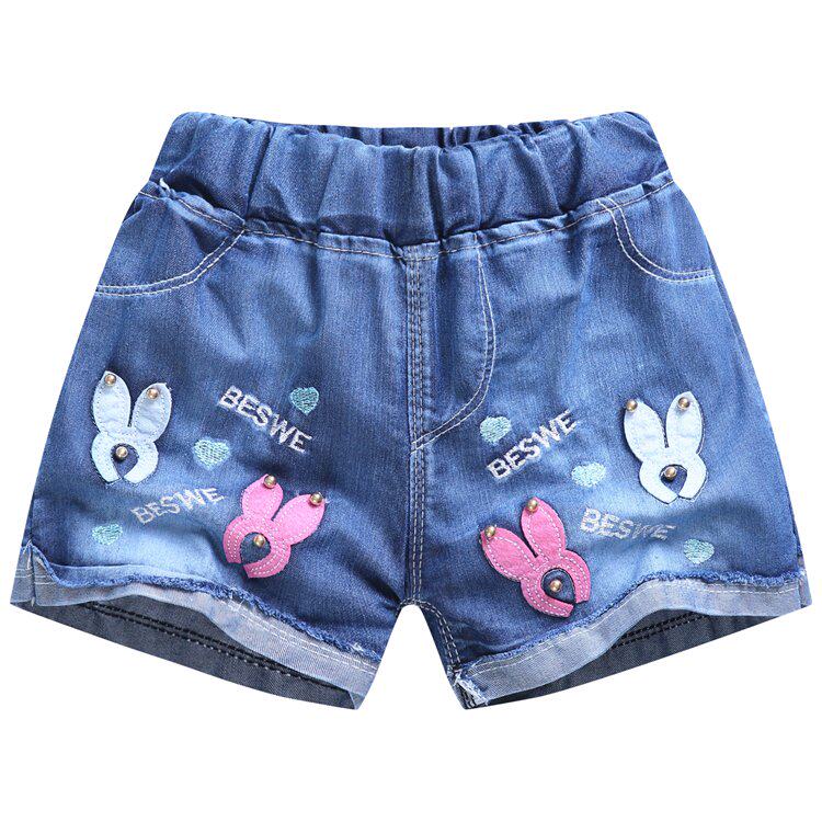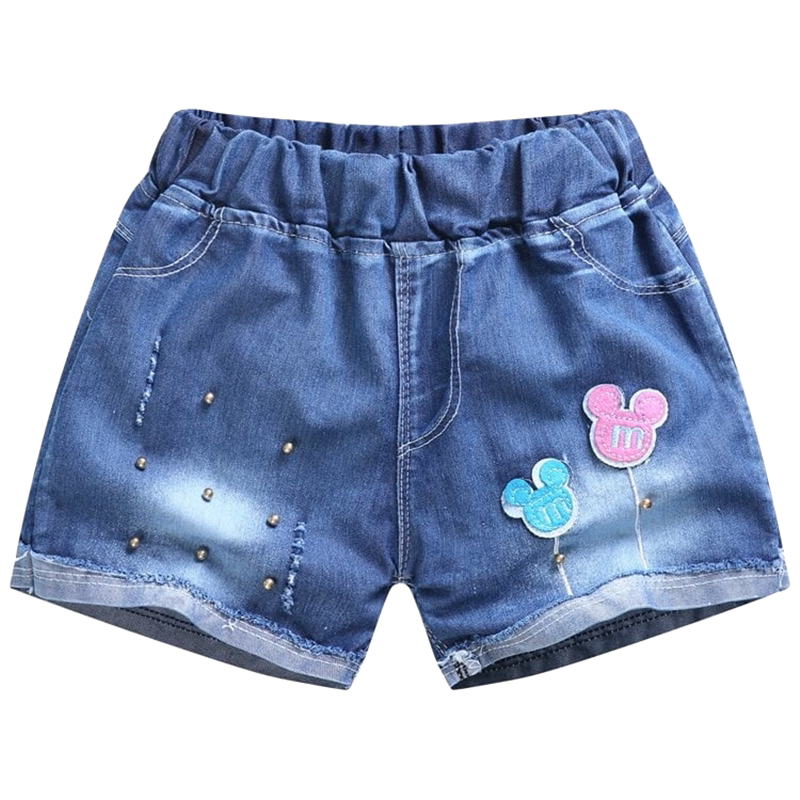 Children's denim shorts girls' thin hot pants summer new medium and large children's clothing girls Korean version of the hole pants trend