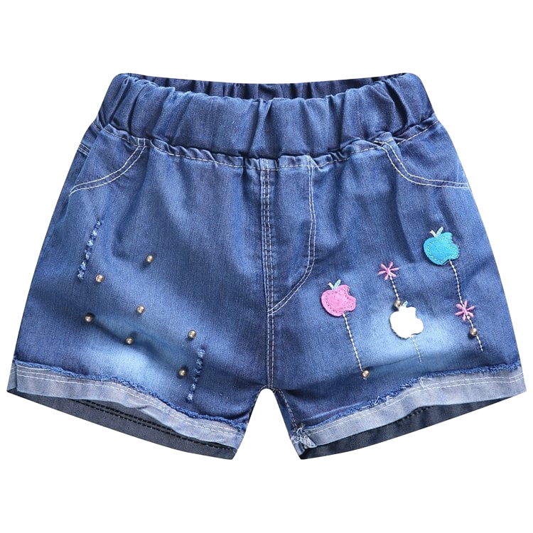Apple Beaded Denim Shorts Mickey Head Beaded Denim Shorts Red and White Rabbit Ear Denim Shorts