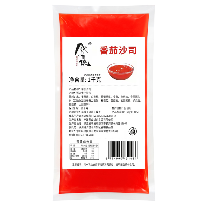 Drink Man Tomato Sauce commercial small packaging of Sashi household 0 fat fries bag 1kg Xinjiang children