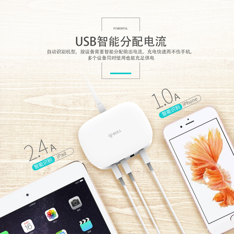Bull flagship store Smart USB charging box 4-port USB socket Travel home fast charger charging head