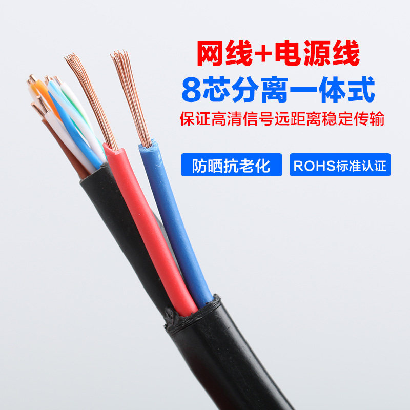 Eight-core network route with power integrated line oxygen-free copper outdoor twisted pair monitoring film two-in-one composite line