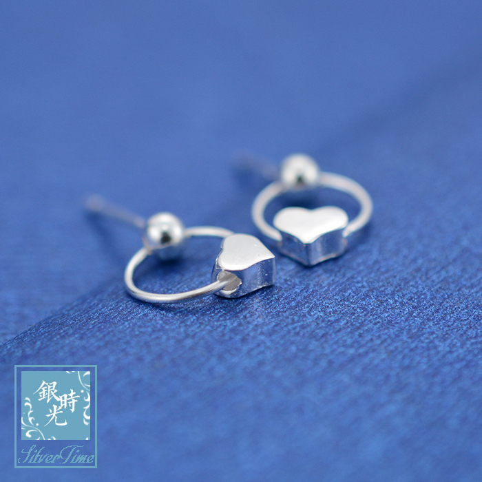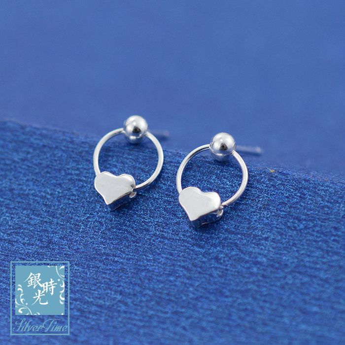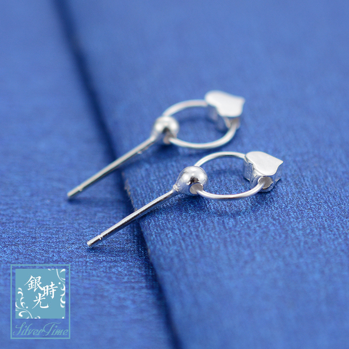 Silver time S925 sterling silver earrings small ball ring hanging love earring circle circle creative earrings female