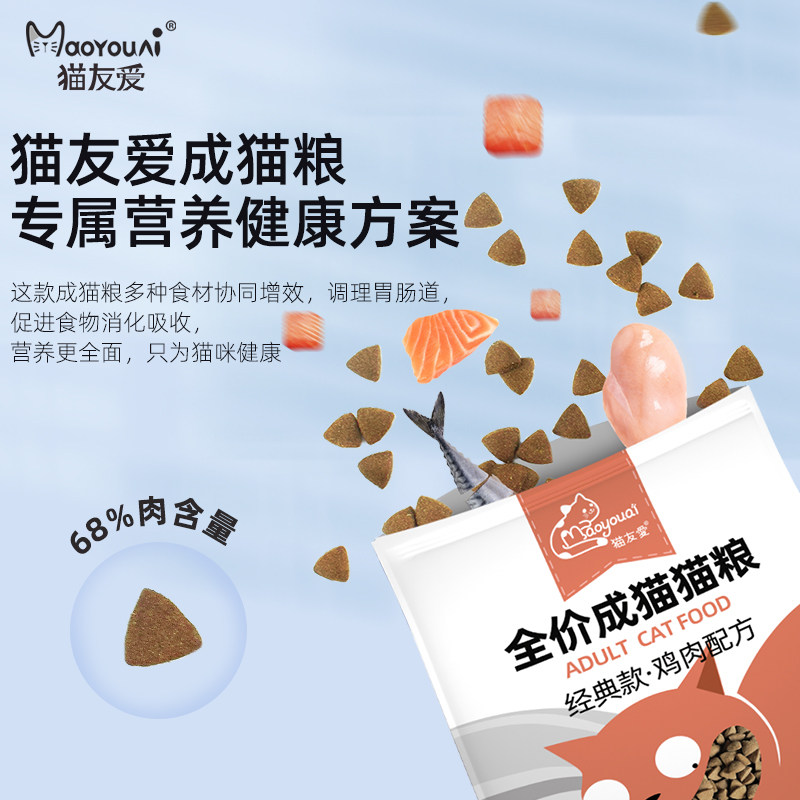 Cat friendly love adult cat special cat food chicken adult 10 cat blue cat American and British short general natural food 1 jin packet