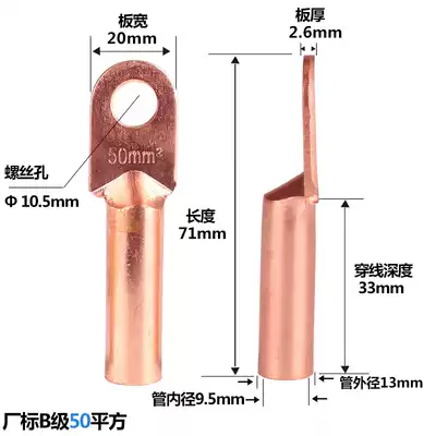 DT copper terminal block 50 square cable copper connector Copper nose copper wire ear Copper terminal block factory standard class B