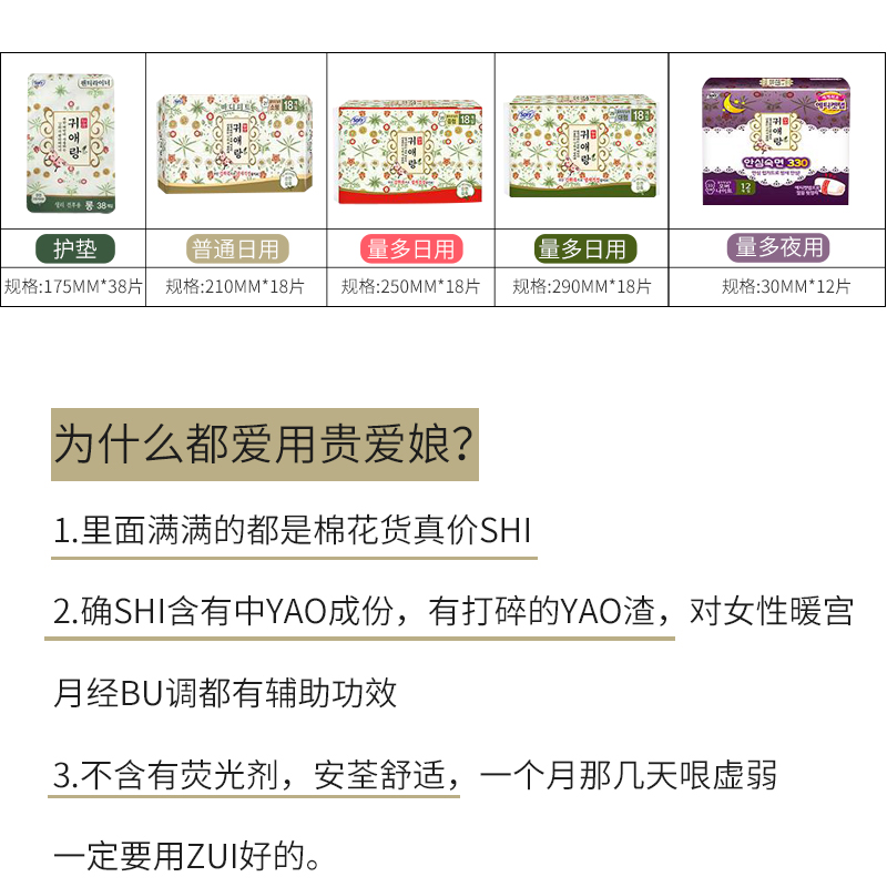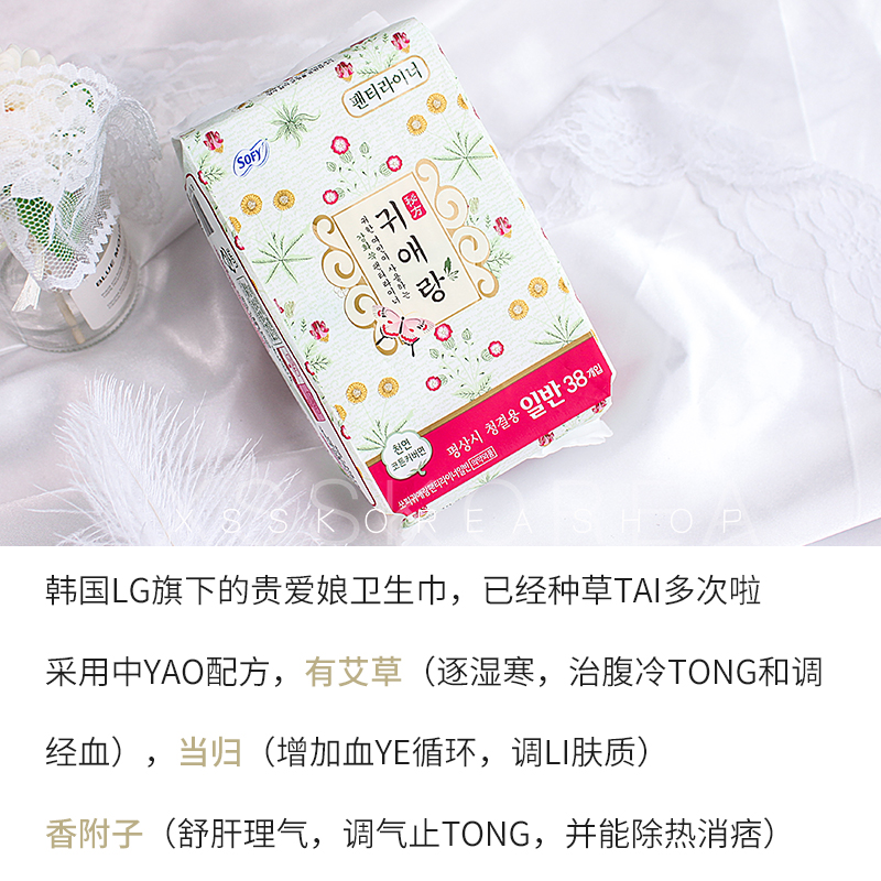 South Korea's LG Gui Ai Niang Zhongcao yao sanitary pads sanitary pads without fluorescent agent to remove odors for day and night use