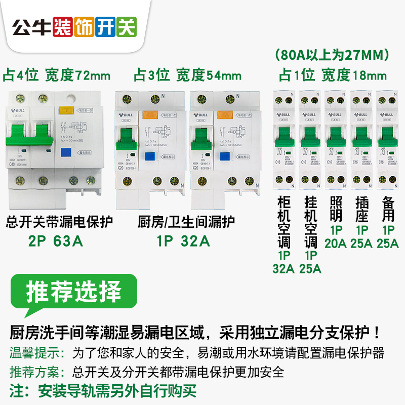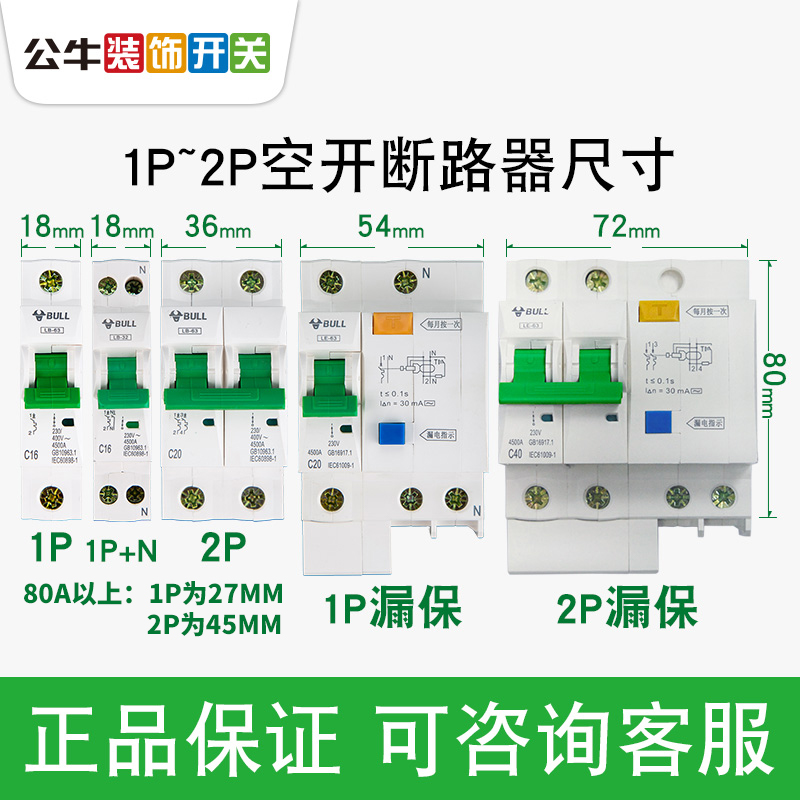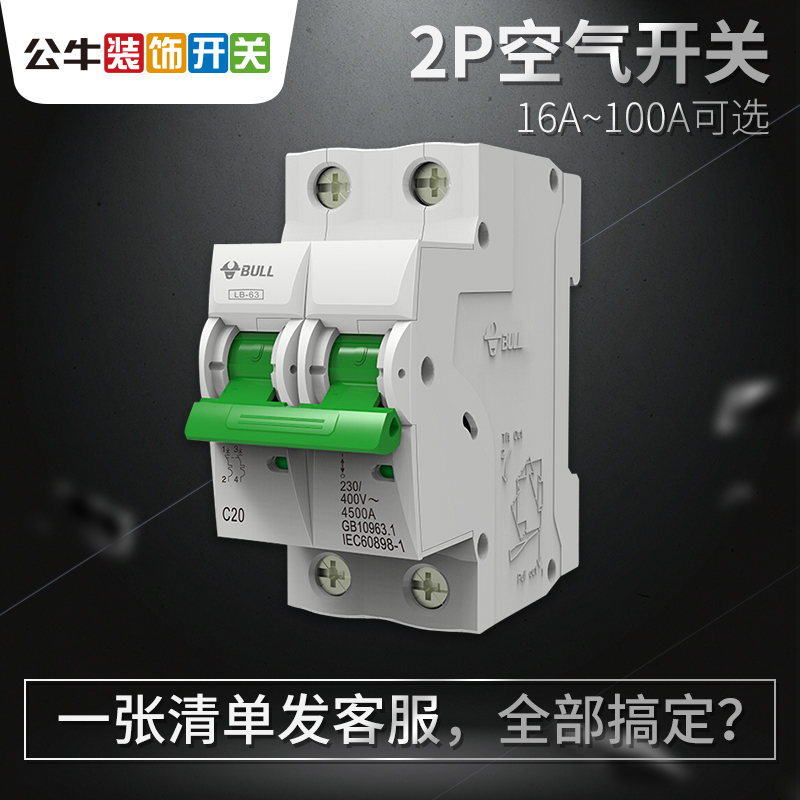 Bull mini circuit breaker Household air switch Air open 2P bipolar air open short circuit switch Overload protector