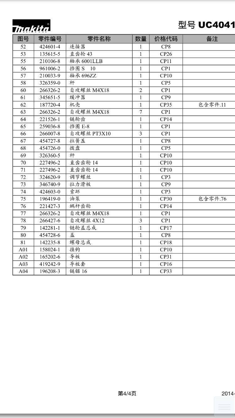Makita Makita 16 inch 400mm new electric chain saw UC4041A original spare parts