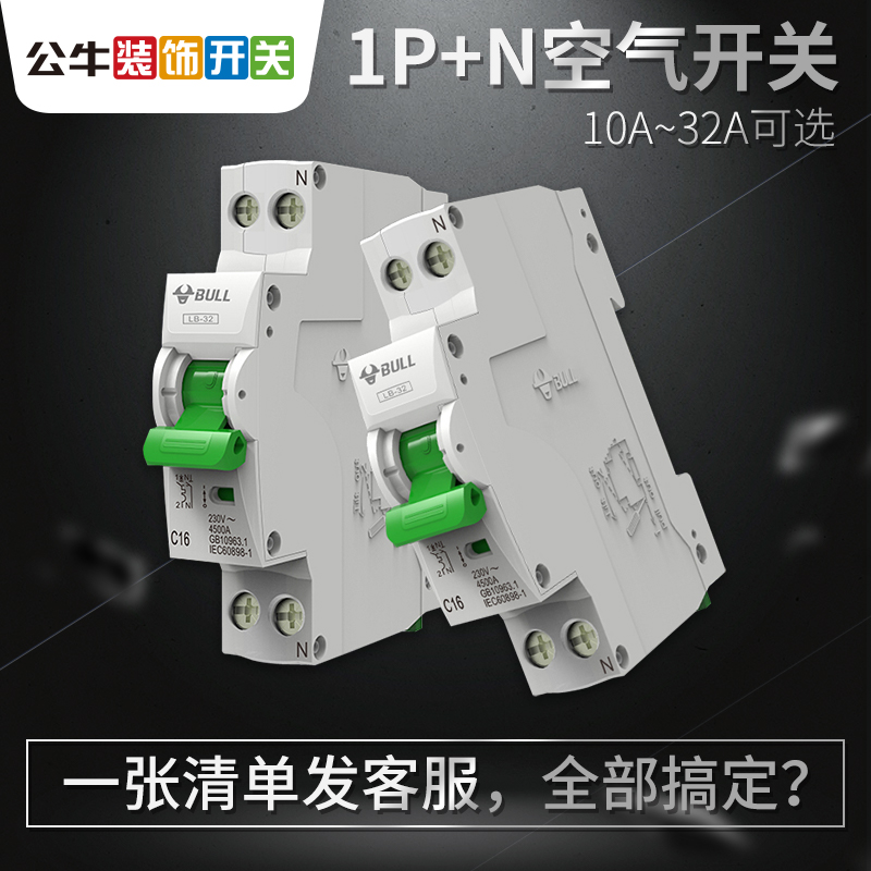 Bull mini circuit breaker double in double out household air switch two-wire air open short circuit 1P N overload protector