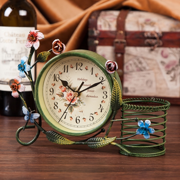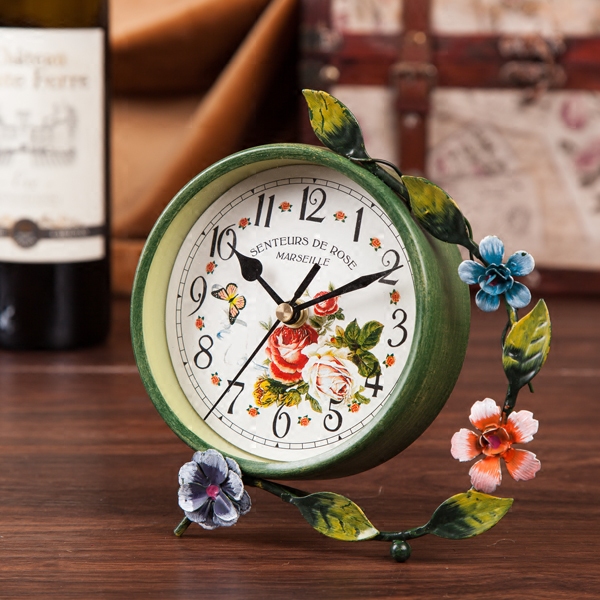 European silent clock bedroom living room clock ornaments pastoral iron small clock table clock clock clock