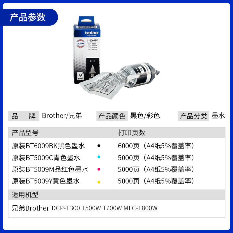 (Brother original)BT6009BK black ink(can print about 6000 pages of A4 paper 5% coverage) (Brother original)BT5009C cyan ink(can print about 6000 pages of A4 paper 5% coverage) (Brother original) BT5009C Cyan ink (can print about 6000 pages of A4 paper 5% coverage)