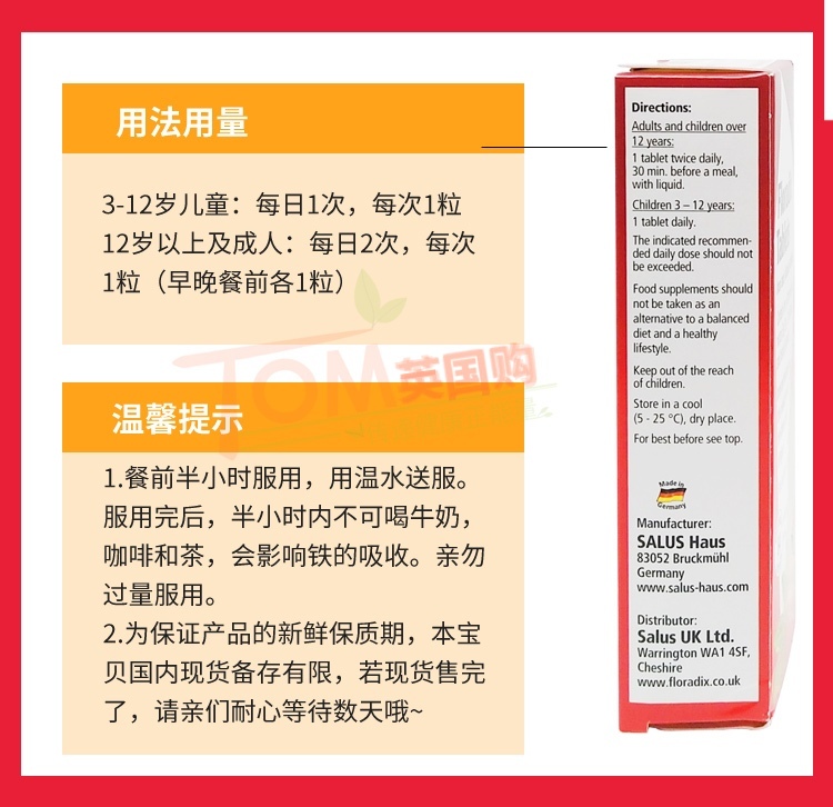Three boxes December, 24 German iron voids Portable Tablets Pregnant Women Breastfeeding Adults Supplement Iron British Version Red Iron
