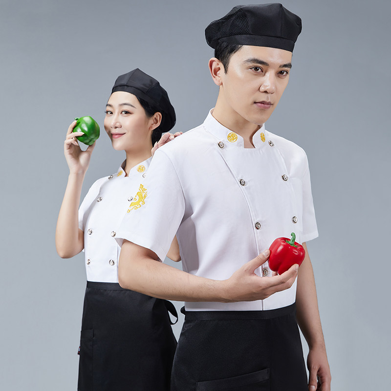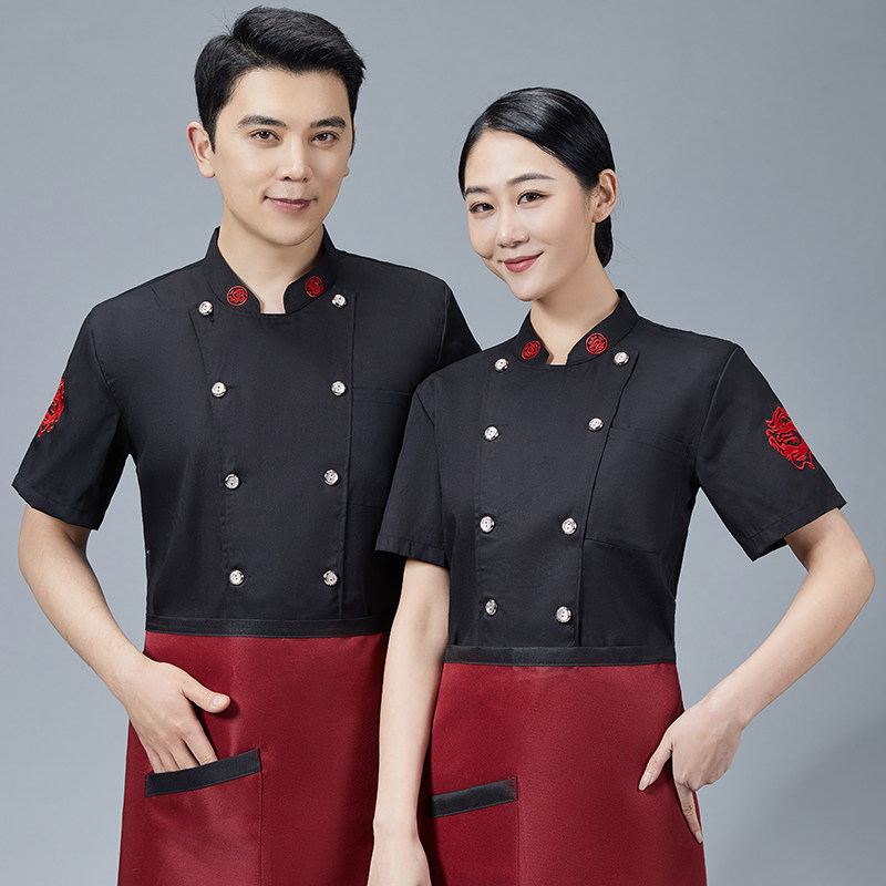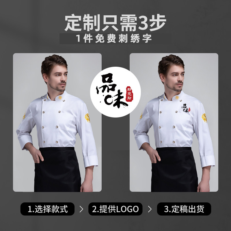 Chef work clothes long-sleeved men's autumn and winter hotel catering hot pot restaurant kitchen chef clothing embroidered dragon short-sleeved large size