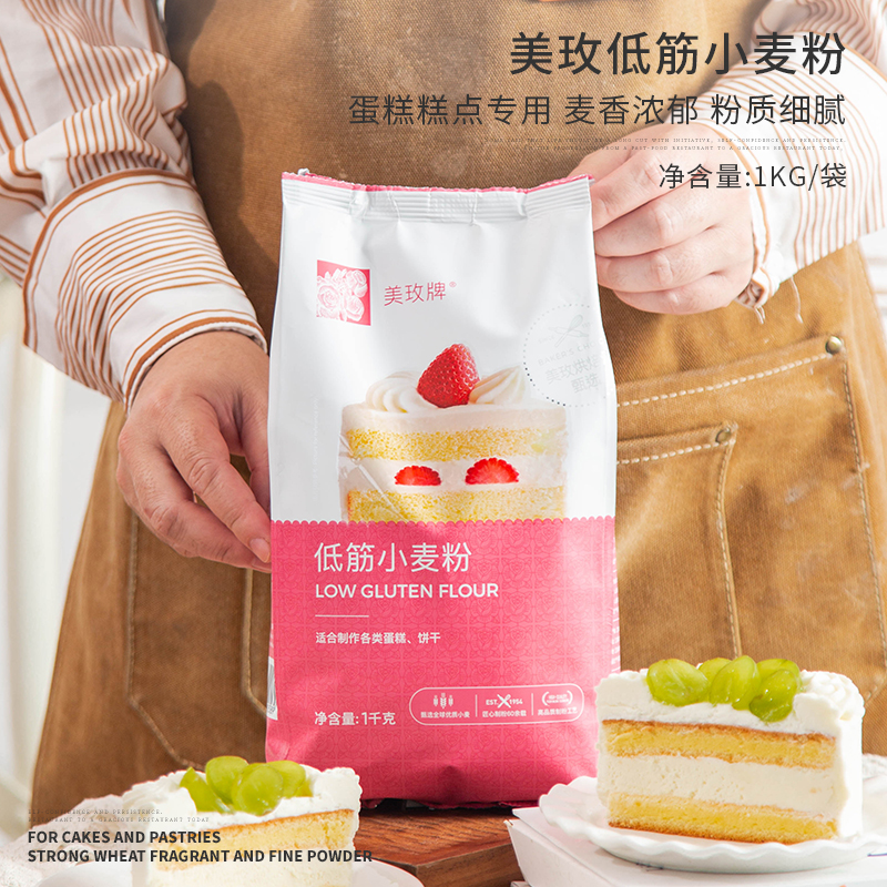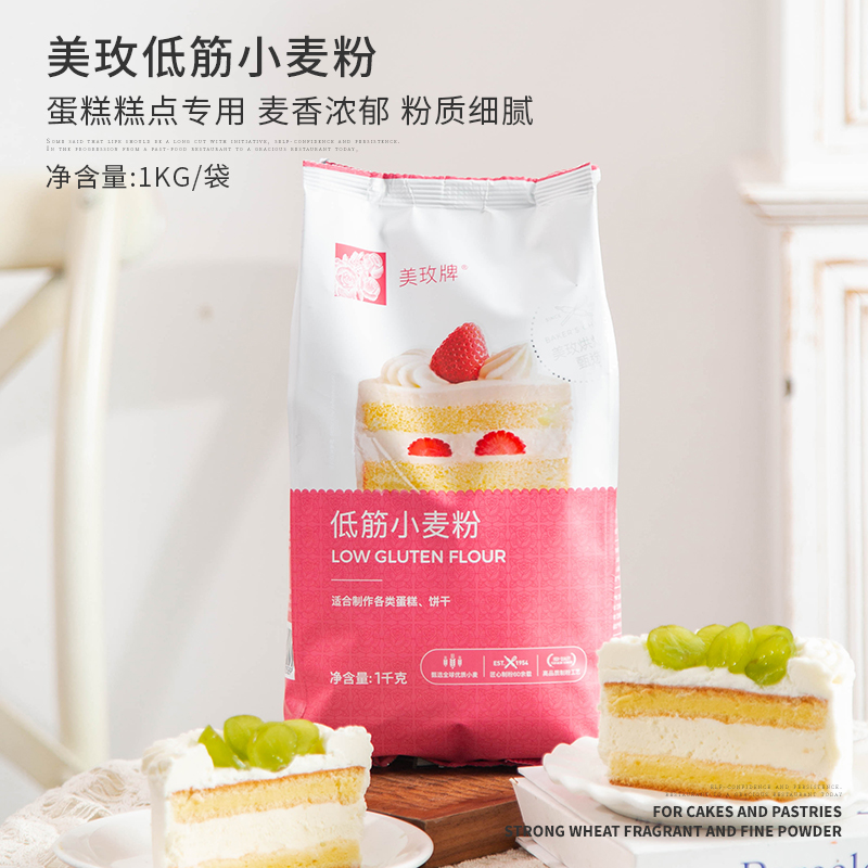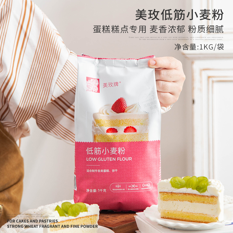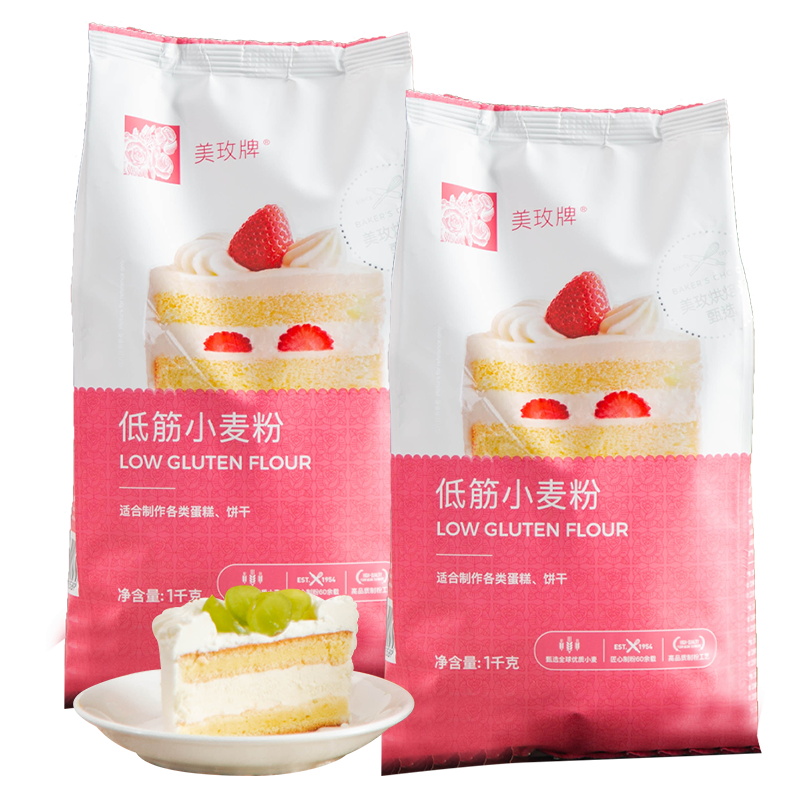 Beauty Rose Low Gluten Flour 2kg Cake Wheat Flour Low Powder Low Pink Baby Cob Baking Powder Baking Material Cookies Cookies