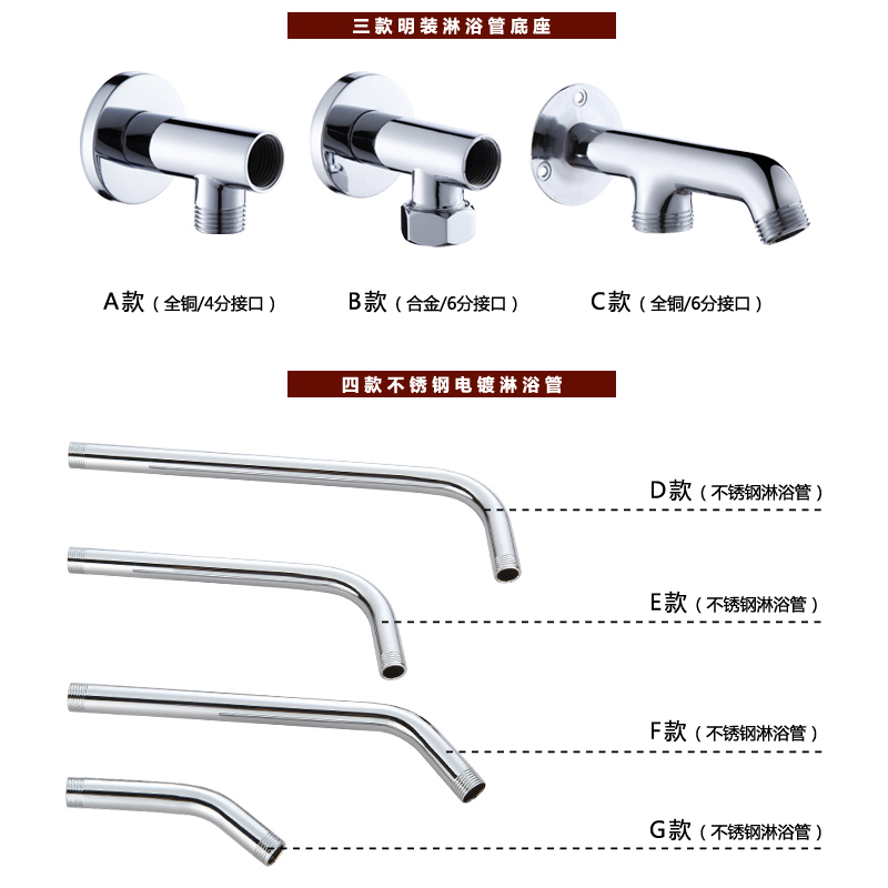 A total copper shower pipe base B alloy shower pipe base C all copper shower pipe base D stainless steel shower pipe E stainless steel shower pipe F stainless steel shower pipe G Stainless Steel Shower Pipe A