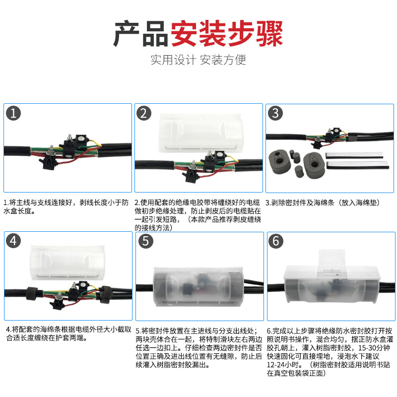 Street light cable glue filling type waterproof junction box IP68 low pressure buried well underwater branch integrated glue injection protection box