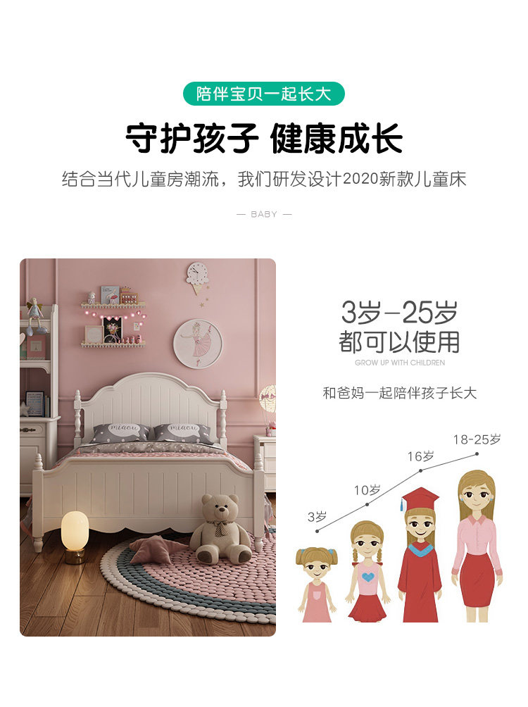 Solid wood bed (ivory white) solid wood (ivory) solid wood bed 1 bed (50cm width) bed 2 bed head cabinet (50cm width) solid wood bed T10CM coconut palm mattress mattress 1