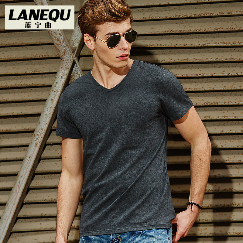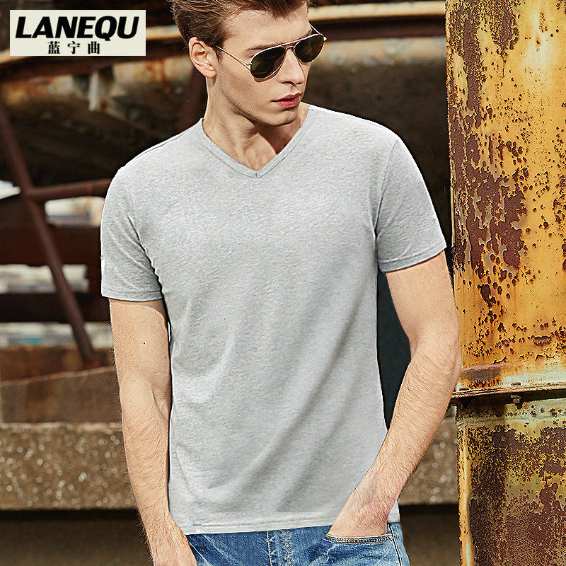 Short Sleeve T-shirt Men's Chicken Hearts V Collar Pure White T-shirt Blood Clothes Pure Cotton Sashimi Long Sleeve Sweatshirt Pure Color Inner Lap
