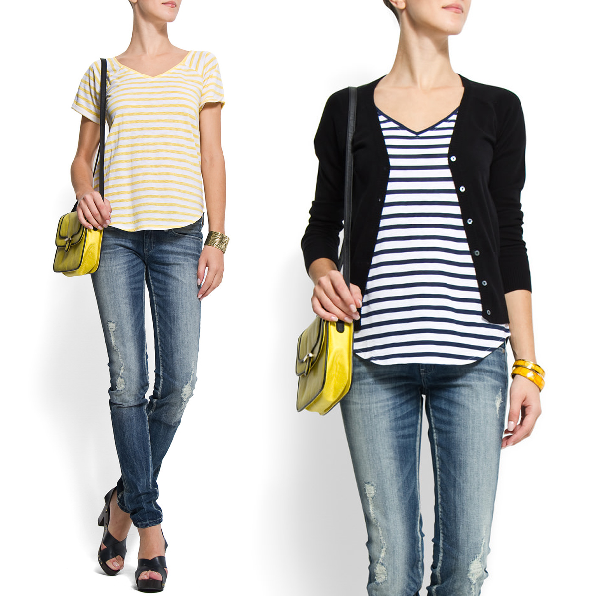Spring and summer new Spanish minimalist base Stripes Casual Stylish Body Cotton Short Sleeve T-shirt Woman V collar