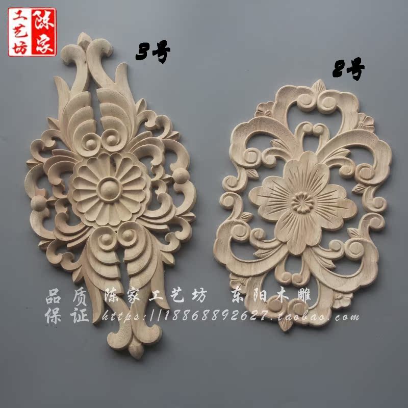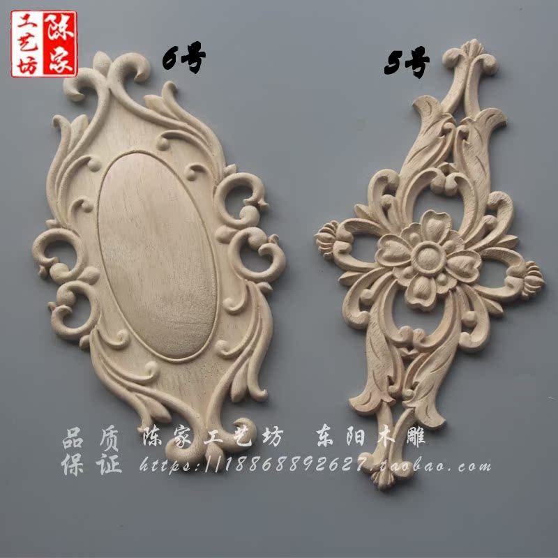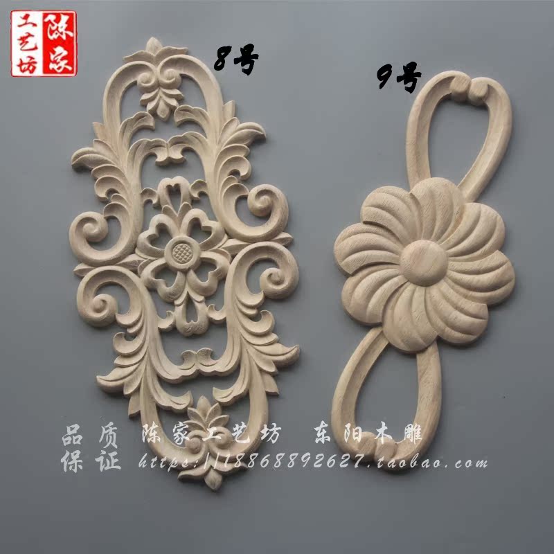 European decals solid wood flower piece Dongyang wood carving door heart carving piece long oval furniture overall cabinet decoration carving piece