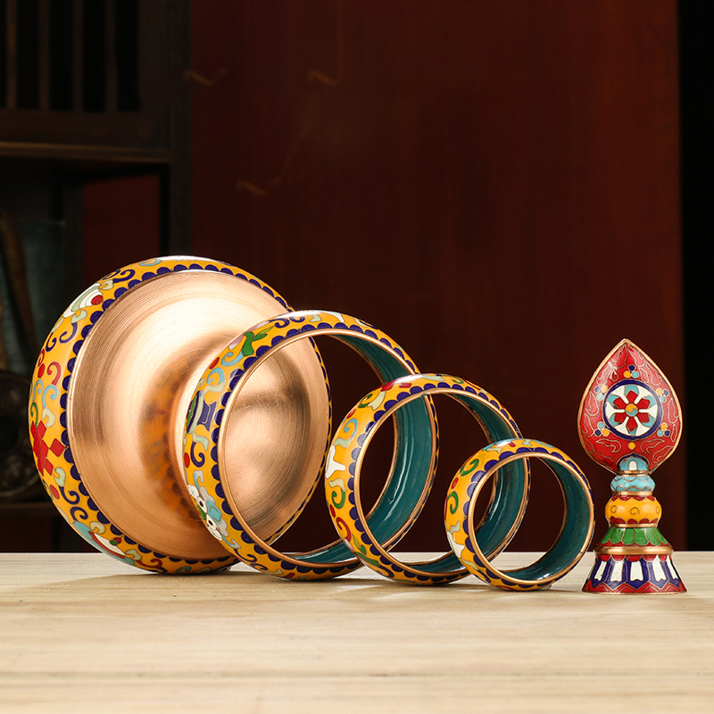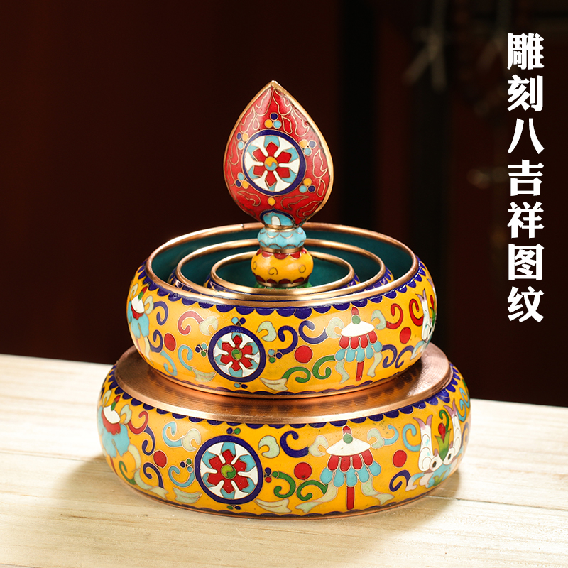 Pure copper polished cloisonne eight auspicious repair for Buddha Manza pan Mancha Romanda plate small yellow