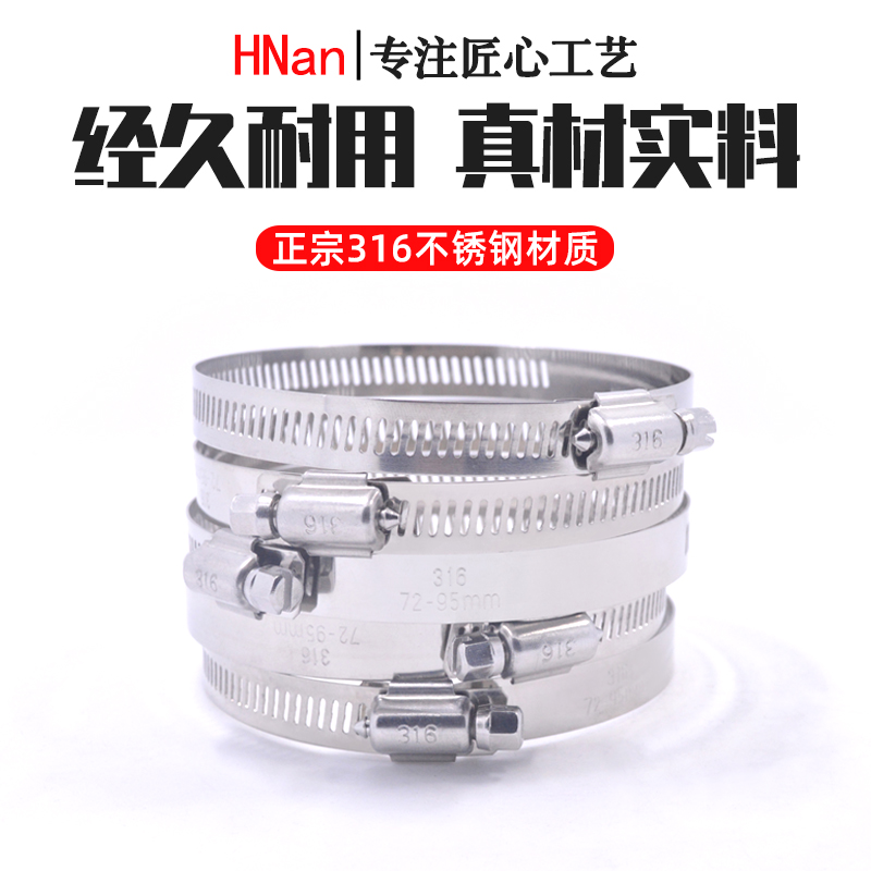 Hui Nan 316 stainless steel throat hoop Acid Seawater Pipe Hoop Hoop Hoop American All-steel Fixed Pipe Clamp Buckle