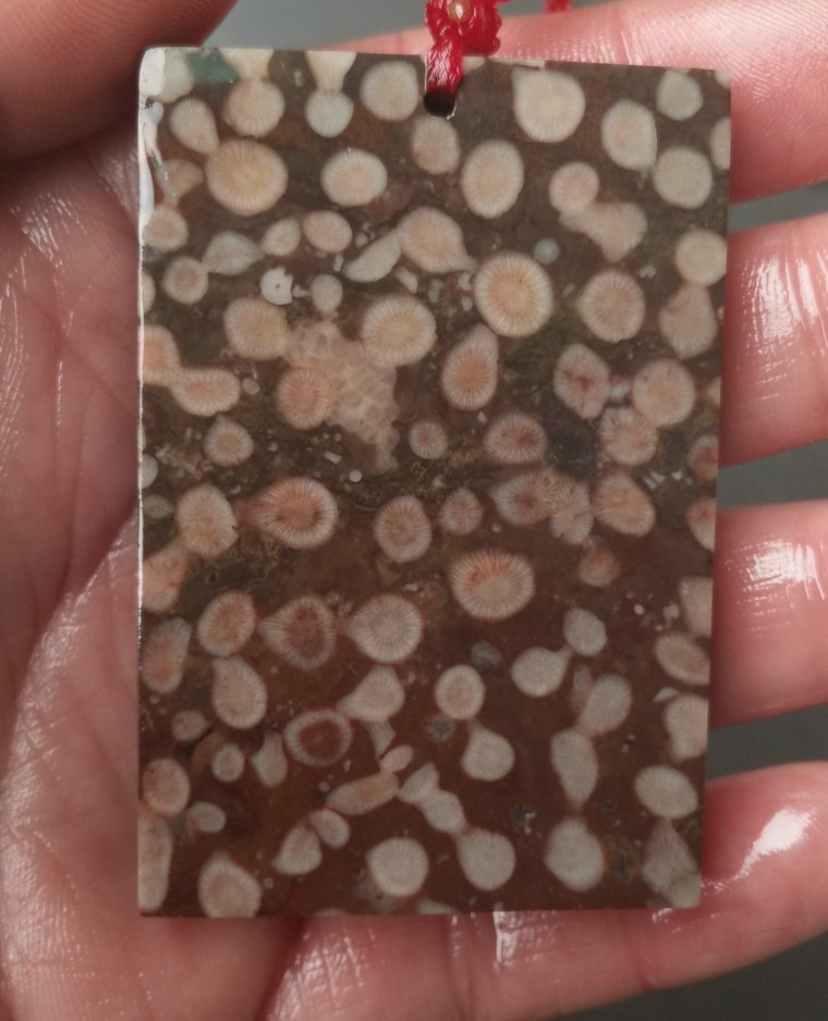 Ning Qiang Coral Jade Safe with no sign hanging board Four-shot grain Spotted Coral can carve car pendant fossil W