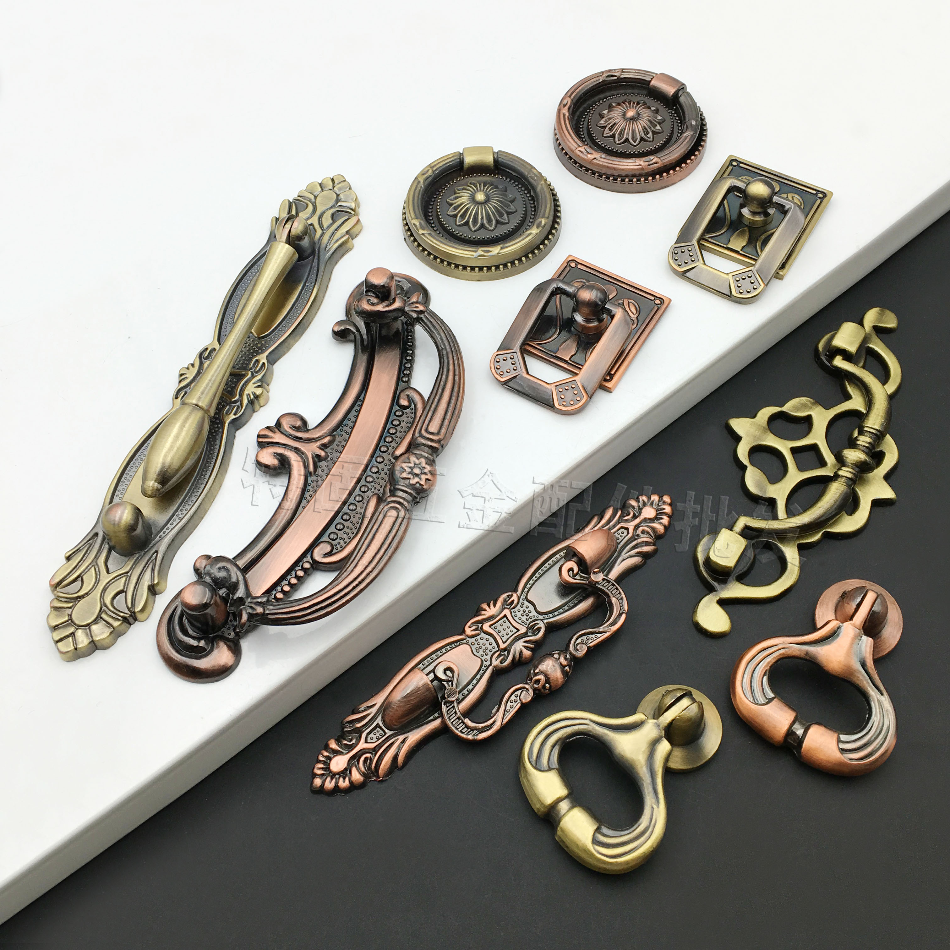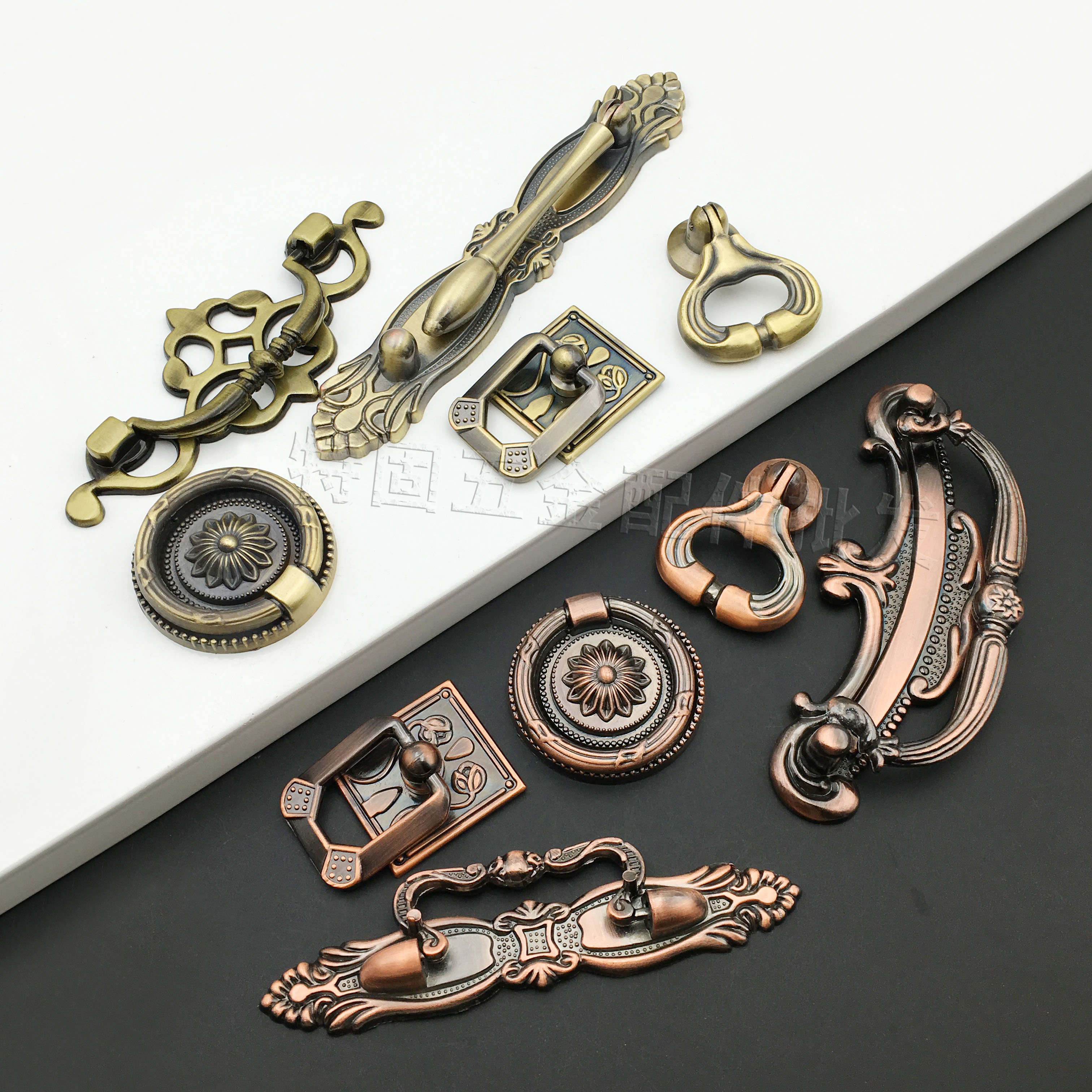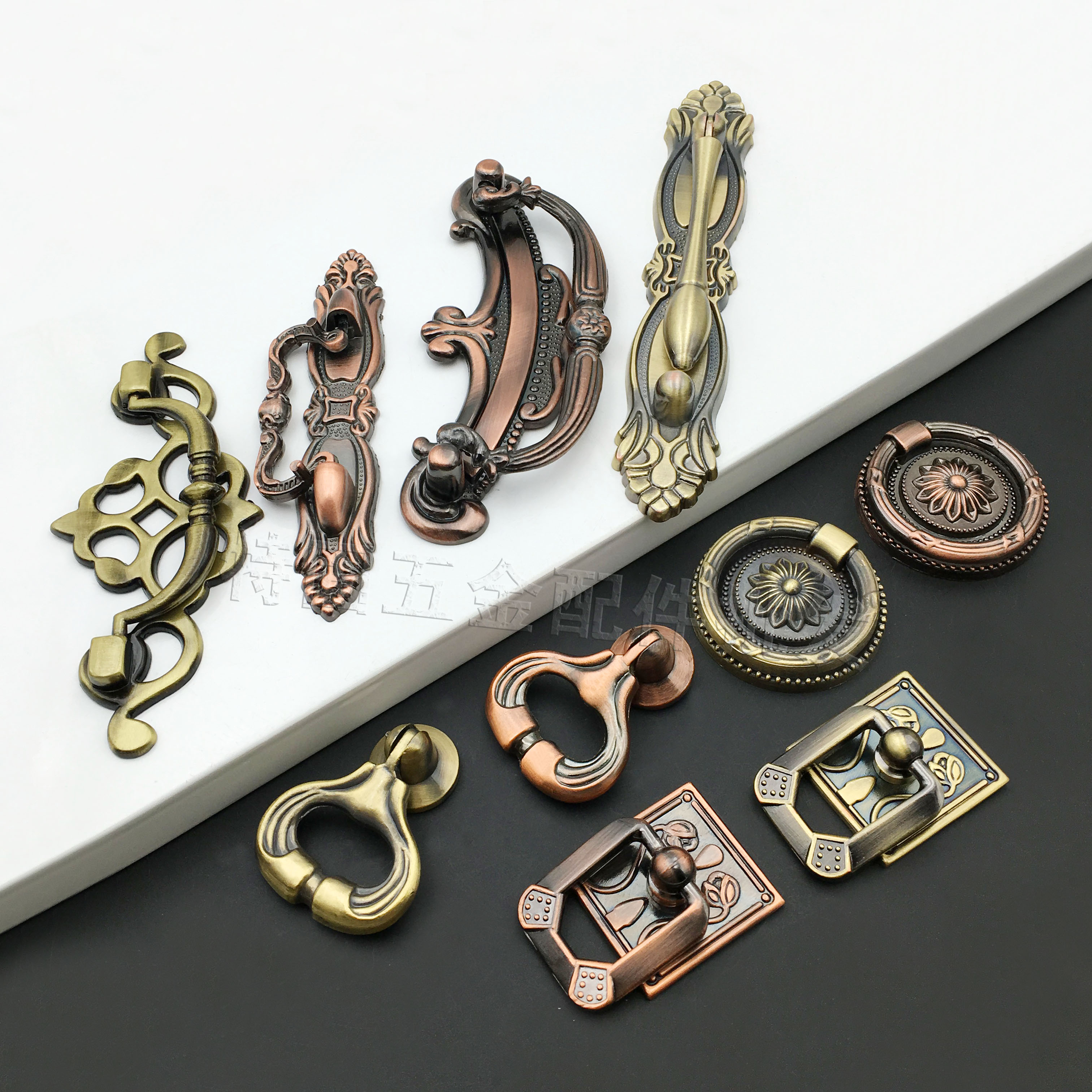 European-style drawer single-hole handle wardrobe overall cabinet bronze pull-ring handle Chinese antique medicine cabinet hanging ring cabinet door handle