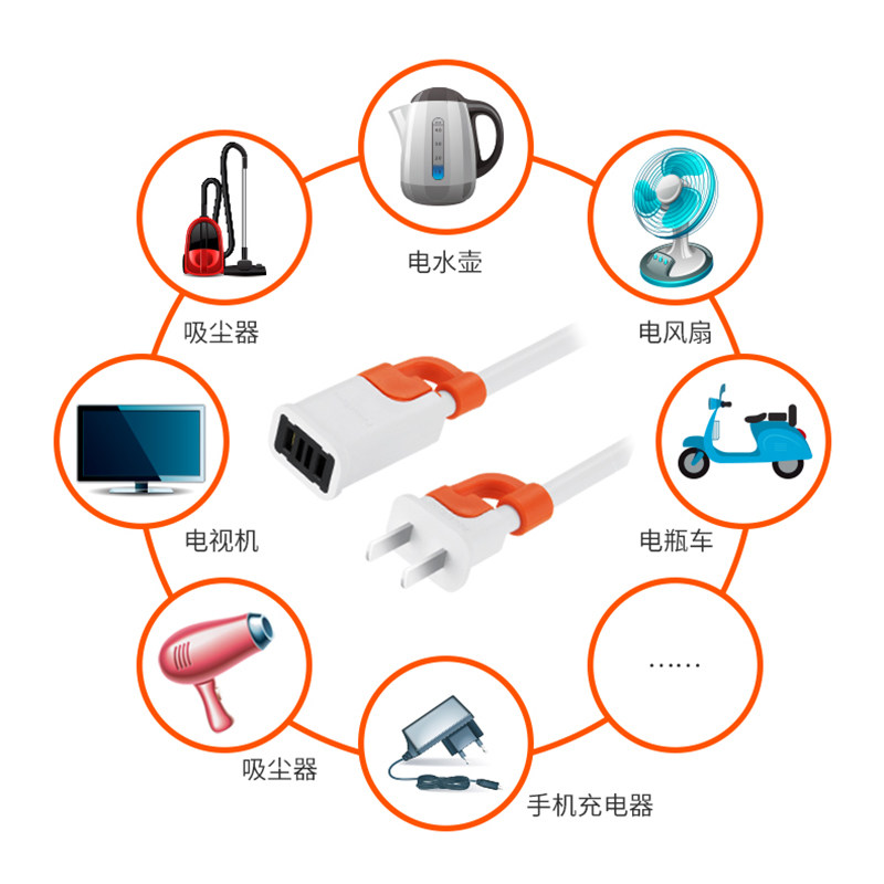 Baoer Xingke two plug power extension cord 180 degrees 2 plug male to female 3C certified black power extension cord