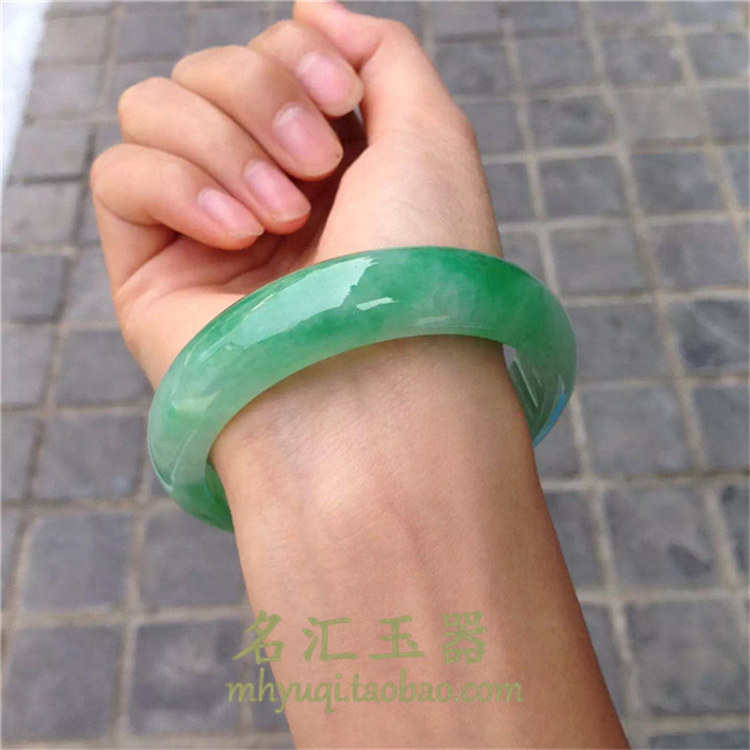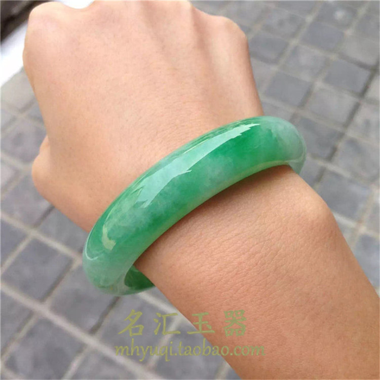 Myanmar natural old pit A goods emerald jade bracelet ice glutinous seed fruit green jade bracelet with certificate KQ002