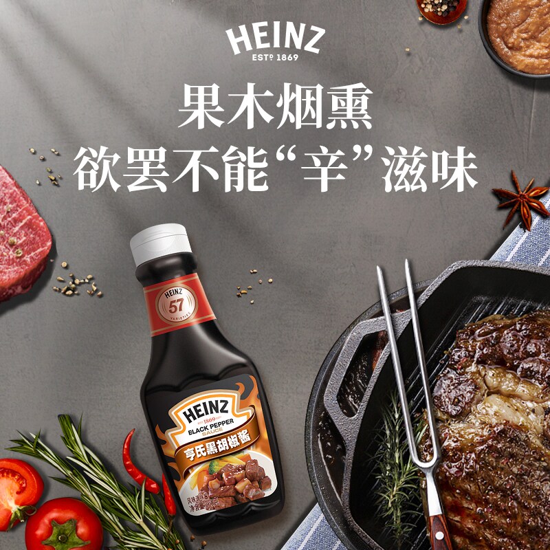 Heinz Black Pepper Sauce Steak Sauce Black Pepper Sauce Spaghetti Sauce Grill BBQ Sauce Seasoning 360g*1 bottle