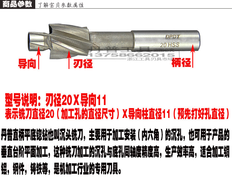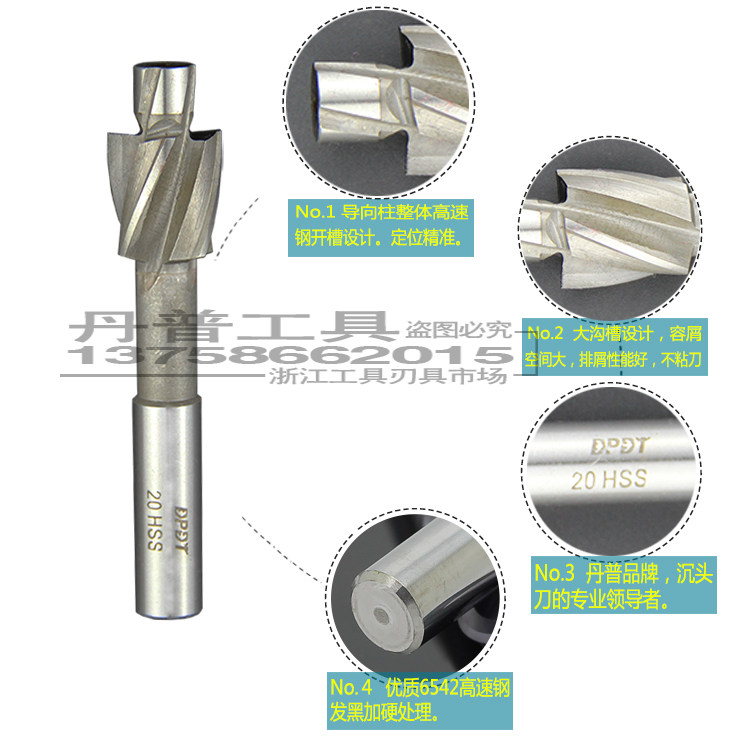 Danpu straight shank with guide column flat bottom boring countersunk head milling cutter countersunk hole drilling hexagon screw bolt m3 4 5 6 8 10