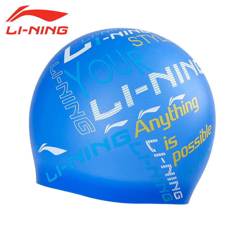 Li Ning Silicone Printed Swimming Cap Men And Women Long Hair Silicone Waterproof Protective Ear Swimming Cap Professional Swimming Gear