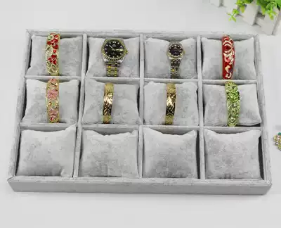 Gray velvet 12 grid watch box jewelry collection bracelet Jade storage box hand display box pillow tray