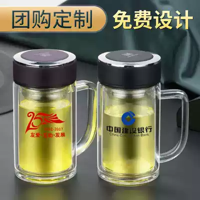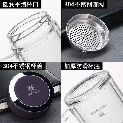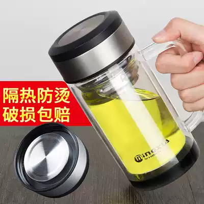 Mingxia double-layer glass with handle filter teacup Portable office water cup Men's and women's business with lid cup large