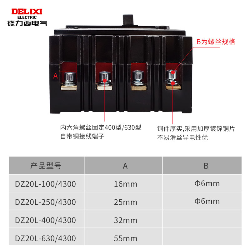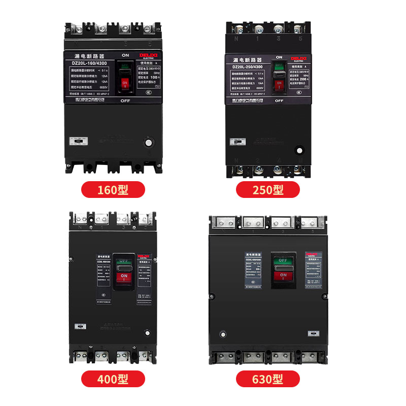 Delixi DZ20L three-phase four-wire 380V leakage protection circuit breaker 100A with 4P leakage protector 160A 250A