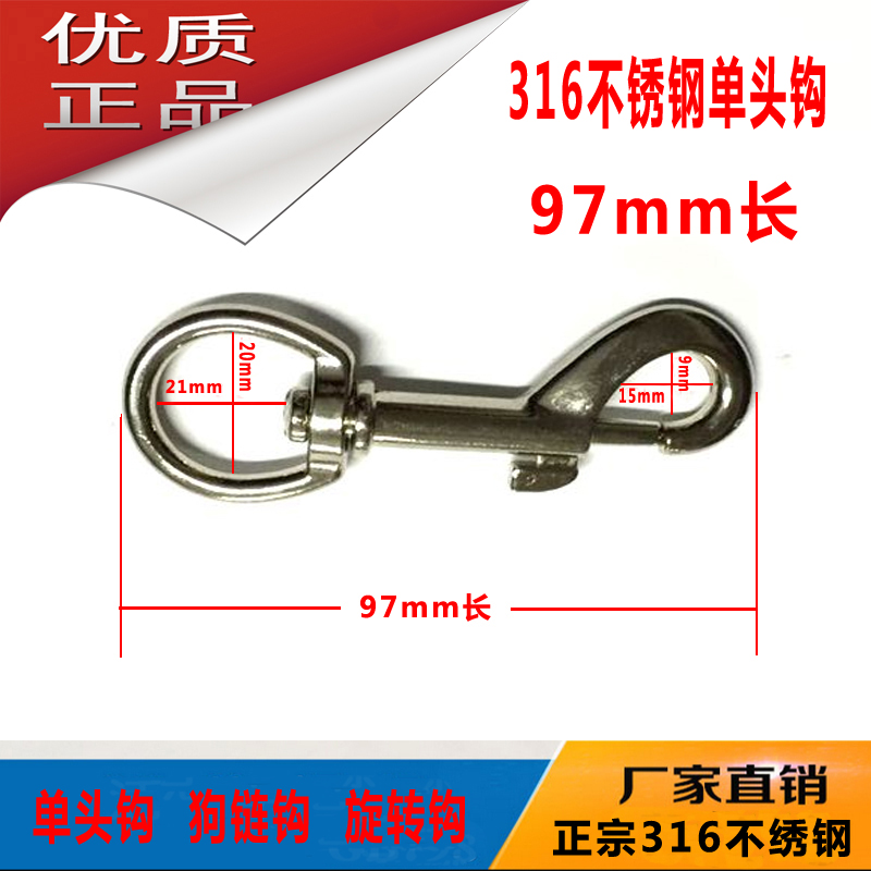 316 stainless steel single head hook diving spring connector Chain head buckle Pet hook Universal rotating hook Multiple specifications