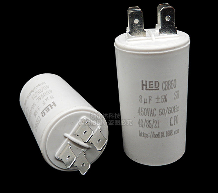 CBB60 inserts flat bottom capacitor 2 5UF4UF5UF6UF8UF10UF12UF450V washing machine water pump capacitor