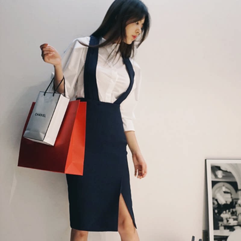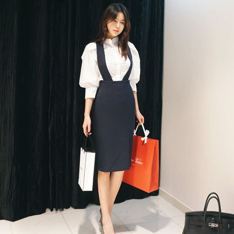 2021 spring and summer new bubble sleeve white shirt Long sleeve large size professional slim top Inner shirt stand collar women